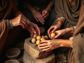 The nuts are hand-extracted from the dried fruit, then cracked between two stones to retrieve the kernels — a meticulous task that requires skill and patience.